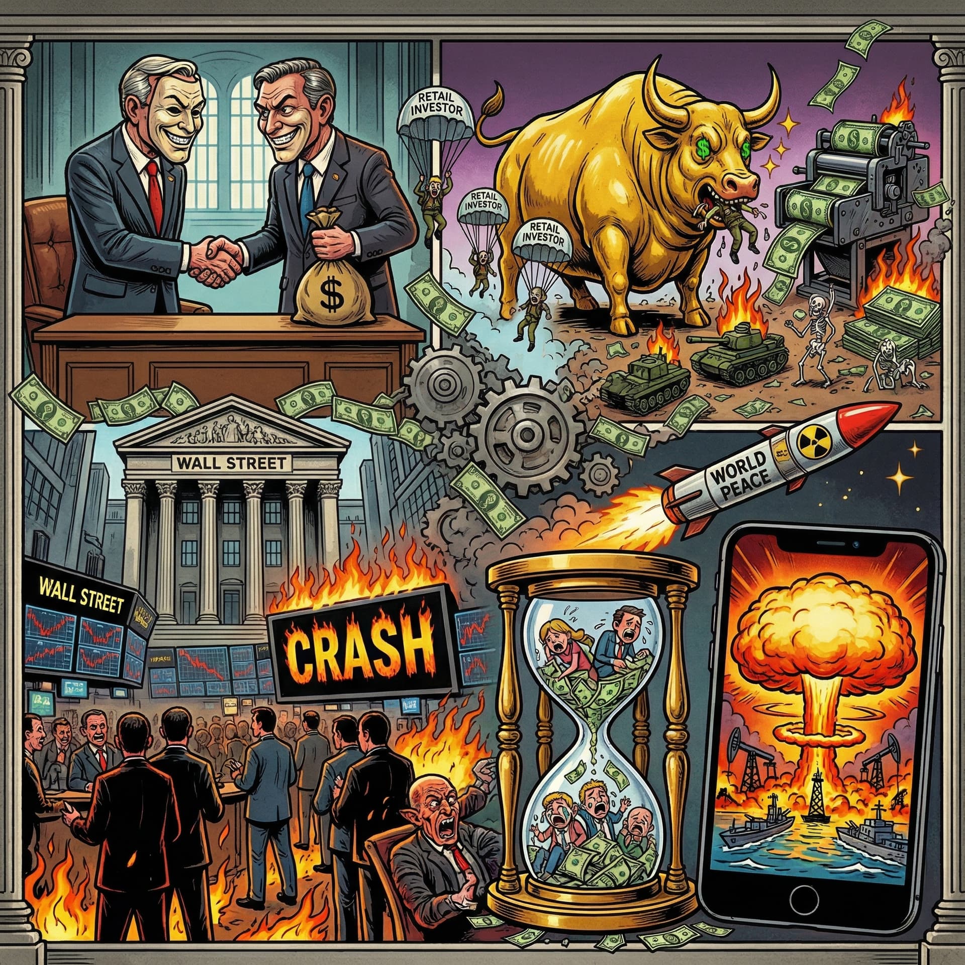 Die Kumulation geopolitischer Schocks – die Blockade der wichtigsten Ölrute der Welt, die Implikationen einer Bodeninvasion, nukleare Drohungen und die Gefahr eines Drei-Fronten-Krieges – führt unweigerlich zur Zerstörung des Vertrauens in die globalen Finanzmärkte. Schritt 6 der Kaskade beschreibt einen historischen Markteinbruch, bei dem innerhalb einer Woche über 3 Billionen US-Dollar an Buchwert vernichtet werden.